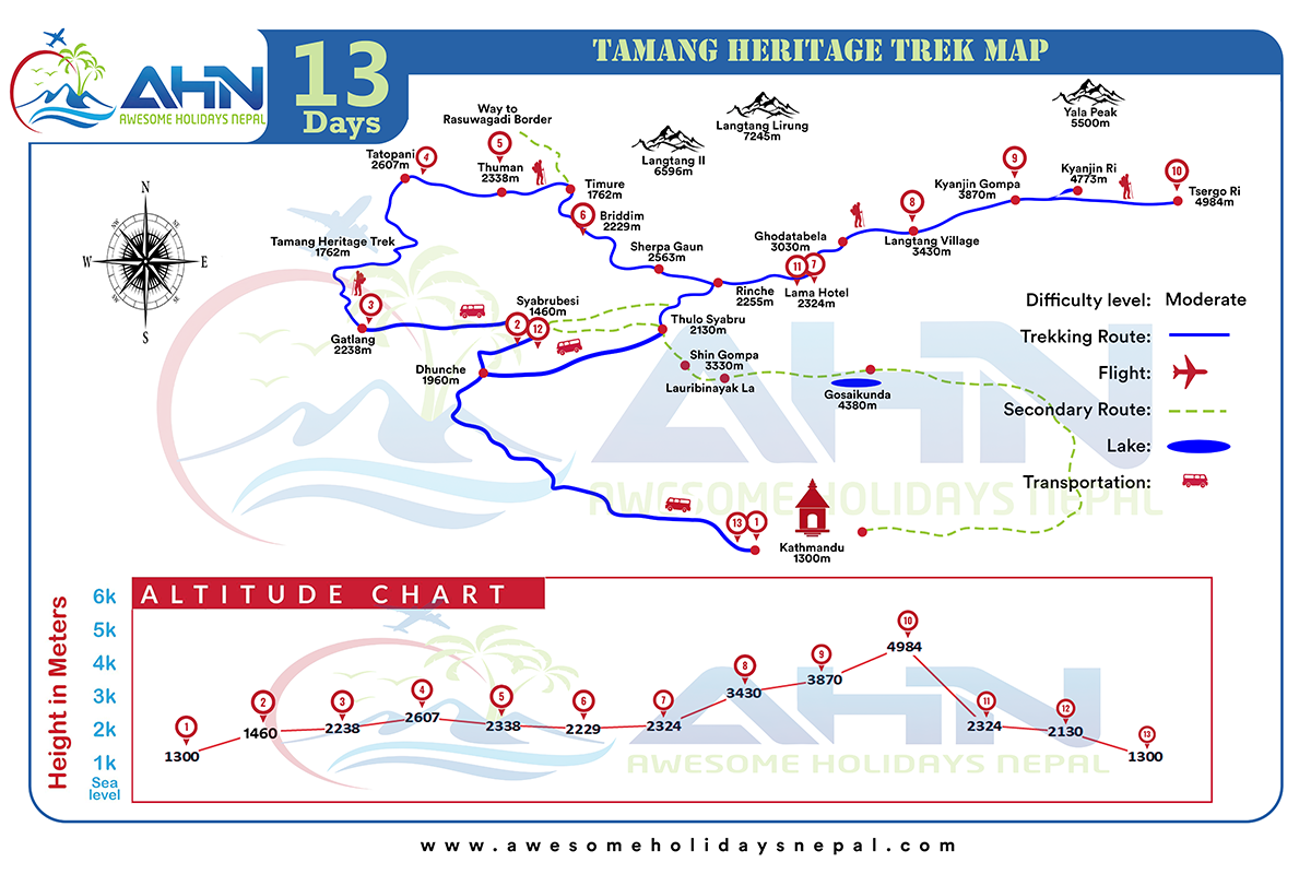 The Tamang Heritage trek with Langtang Valley usually takes 13 days to complete. However, the trek duration might vary depending on your chosen route and the packages you booked. If you have time constraints, you can customize this trek to suit the number of days you have available.